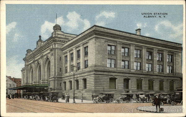 Front: YEWAY UNION STATION ALBANY, N. Y. Jo Back: 46442-PUB. BY ALBANY NEWS CO., ALBANY, N. Y. MADE IN U. 8. A. gla Err²³ ALBANY NY. COMMERCIALCHROME al Ram dim 2. august 1989
