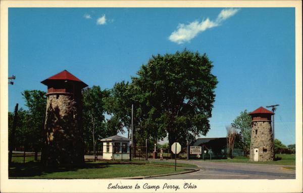 Front: CAMP PENY Entrance to Camp Perry, Ohio Back: DISTRIBUTED BY D. S. KIRKPATRICK, LAKESIDE, OHIO 547-ENTRANCE TO CAMP PERRY, OHIO CURTEICHCOLOR® 3-D NATURAL COLOR REPRODUCTION (REG. U. S. A. PAL. OFF.) 7C-K1787