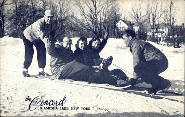 Front: Co KIAMESHA LAKE, NEW YORK Tobogganing Back: The CONCORD HOTEL on Kiamesha Lake, N. Y. THE ALL YEAR . . . ALL SPORTS RESORT HERB 609) LAURO VIEW CO NYS