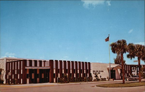 FM-14 The United States Post Office at FORT MYERS, FLORIDA showing part of the Bridge of Light across the Peace River. Published by Tropical Cards, 838 9th Street, West, Bradenton, Florida 33505 S-61947-1