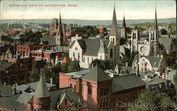 Front: BIRDS EYE VIEW OF WORCESTER, MASS. TEL Cㅜㅜㅜ Qun 시작 Tru Back: E 6100 hopp. in good Be your mother Jother WOR qa hind + Siste From grund AMULJETNEDA CESTE TERLOS 4. ST MAY 17 230 PMCC 1909 036 William & Lavoie But 370 Ludlow mass.