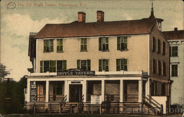 Front: 58 The Old Hoyle Tavern, Providence, R. I. BOARD W.W.CAMERON HOYLE TAVERN. HOYLE ESTATE TO LEASE SMITH Back: Published by Blanchard, Young & Co., Providence, R. I. Made in Germany HERE