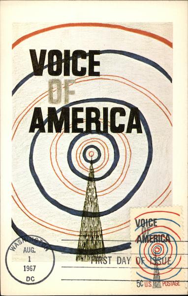 Front: VOICE OF AMERICA WASA DC VOICE OF AMERICA FIRST DAY OF BUE MARNA Back: The US maximum card in color Colorano SERIES 1967 NO. 8