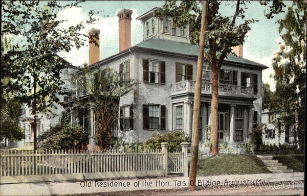 Front: TOBA ini 50 Old Residence of the Hon. Tas. G. Blaine, Augusta Me Back: No. 236 2-28-08 wa Buit 25 Miss Bertha A Goff