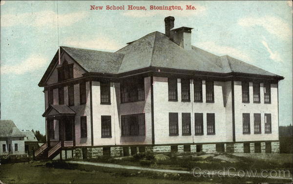 Front: New School House, Stonington, Me. Back: ZIM Pub. by W. M. Prilay, Pittsfield, Me. سکتے مشلو to Bertha Fron QUALITY BRAND Aubrey