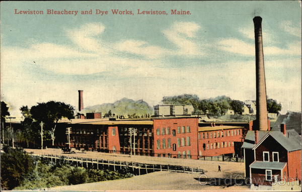 Front: Lewiston Bleachery and Dye Works, Lewiston, Maine. ENDY BECHAS #6 00 Back: 14031-PUB. BY W. M. PRILAY, PITTSFIELD, ME. they do a big Business here they Implany good many in the dype warkun Yours Truly, مند ope Ba ав Domestic and Two Cente