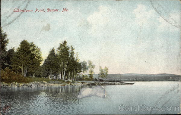 Front: Elkinstown Point, Dexter, Me. 10 Back: No. 8548. The Metropolitan News Co, Boston, Mass, and Germany, → Post Card * Bust 20 Best TWO CENTS