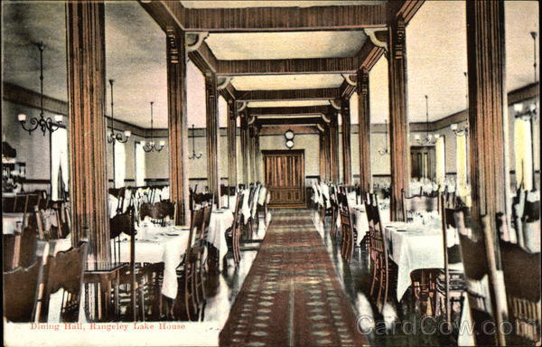 Front: Dining Hall, Rangeley Lake House 2 Back: Pub. by J. B. Marble MC For Address. your Friend дам of the state of Mame M....... To Bert Fron Bust