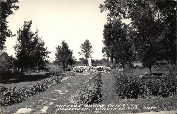 Front: OUTDOOR SHRINE CISTER MONASTERY ORAUCHEL WIS މތޓހނ Back: Bm-1 150 POST CARD EK ALL RIGHTS RESERVED-THE L. L. COOK CO., MILWAUKEE viss 1