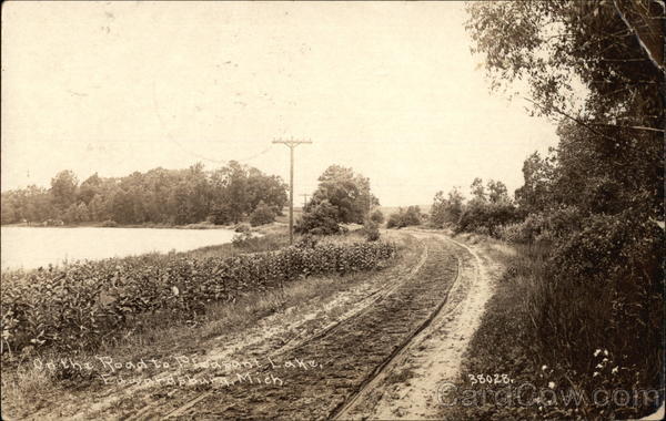 Front: Road to P Lake Mich 38028. Back: وتی JH) 200 POST CAR ere alri abright and one ogring start fack vo. 24 1926 STAR DETAGE Mo morrow sometime Mrs C. A Hirons (Shursday) Fdon't know what train we will get home Sumen.co Pancas Milan Паперо