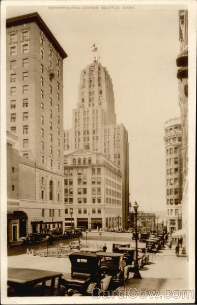 Front: LELE LULELE LE LE LLELE LE METROPOLITAN CENTER. SEATTLE. WASH. ΓΙ Fr Fr rr FC Back: SCENIC PHOTO PUBLISHING CO., INC.. SEATTLE, WASH. ORRESPONDENCE N-96 8.50 ADDRESS
