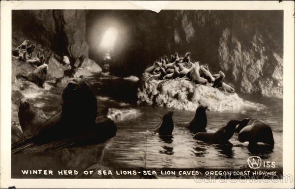 WISS WINTER HERD OF SEA LIONS-SEA LION CAVES- OREGON COAST HIGHWAY ***
