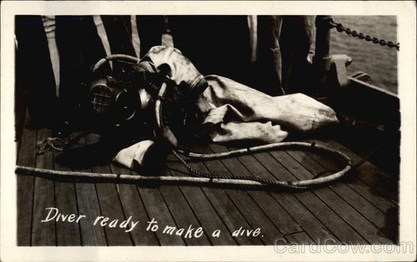 Front: Diver ready to make a dive. sssss Back: CORRESPONDENCE MERE ◄◄N 0 14/52 AA 20 NAME AND ADDRESS HERE