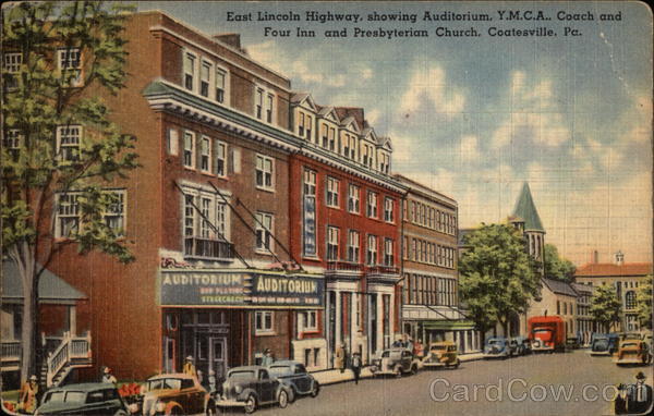 East Lincoln Highway, showing Auditorium, Y.M.C.A., Coach and