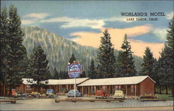 | Lake Tahoe's Finest Modern Motel. Beautyrest mattresses for your comfort. - Fishing, Boating, Hunting and Winter Sports. Hiway open year around. 1 block from Nevada's most popular gambling resorts. Close to stores, theaters, and beaches. Owners: ERNA and DENISE WORLAND BOX 1, STATELINE, CALIFORNIA. Phone: TALLAC 67Y14 |