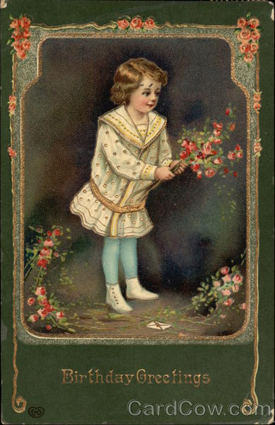 Front: Hayale FAS LIFE De Birthday Greetings Back: 1918 eving Fromn Supe 1 Good by grandma ELLSHIRE 40 PM 1910 OHIO. Mr bload Buchanan Berne Ind. Janneckens RR #2₁₂ BOX =