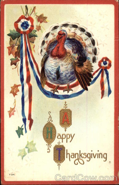 Front: T-84 appy hanksgiving Back: 1917. Iva. A. Happy to Florence Thanksgiving Miss Florence M. Cifer Randolphs n.y.