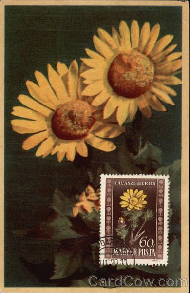 Front: IN Ⓒ#C#*#*#*#*# TAVASZI HÉRICS 60f IMAGYAR POSTA #*#*#*#*#*#*#*# VERTEL J. Back: OFFSET NYOMDA BUDAPEST 60 fillér Ára KÉPZŐMŰVÉSZETI ALAP (5. SZ. FIÓK, BUDAPEST, VII, DOHÁNY-UTCA 22) کی گار 77