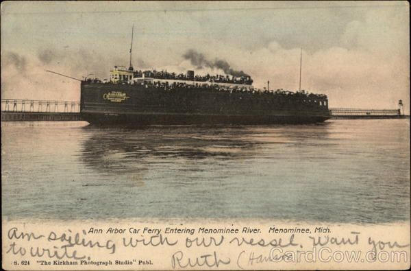 Ann Arbor Car Ferry Entering Menominee River. Menominee, Mich.
