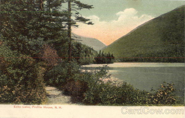 Front: Echo Lake, Profile House, N. H. Back: Published in Saxony by G. W. Morris, Portland, Maine- One Cent for United States and Island Possessions, Cuba, Canada and for Foreign. 99344