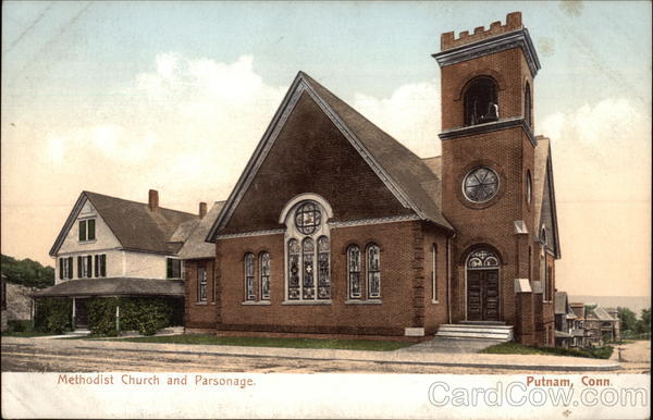 Front: 60 Methodist Church and Parsonage. Putnam, Conn. Back: Leipzig, Dresden. 6732 Published by The Rhode Island News Company, Providence R. 1., POLY CHROME United States and Island Possession, Cuba, Canada and For all other Countries Two Cents