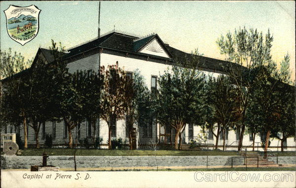 Front: SOUTH MINN DAKOTA FR HA Capitol at Pierre S. D. Back: Illustrated Postal Card Co. New York- Germany. IV-26 DOMESTIC AND Two CENTS