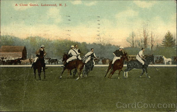 Front: A Close Game, Lakewood, N. J. Back: M-7685 RI LEIPZIG BERLIN NEW YORK. Purst Cran KEWOOD R.P.H. N.J SEP 16 Z 7-AM 1912 Miss Goldy Haines Columbus N.J.