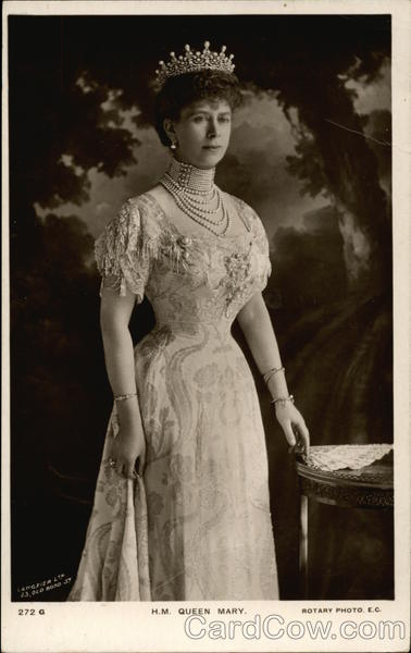 Front: LANGFIER LTP 23, OLD BOND ST 272 G Gazte H.M. QUEEN MARY. ROTARY PHOTO, E.C. Back: ROTARY PHOTOGRAPHIC SERIES. CARD. 3,50 Printer in England