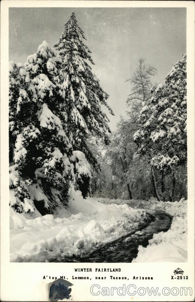 Front: WINTER FAIRYLAND A'top Mt. Lemmon, near Tucson, Arizona X-2912 Back: I be # COLOd LOLLESGARD SPECIALTY CO., TUCSON, ARIZONA