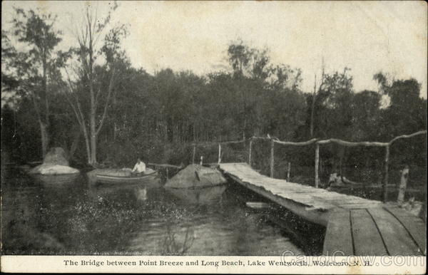 Front: 11 The Bridge between Point Breeze and Long Beach, Lake Wentworth, Wolfeboro, N. H. Back: 100 COMMUNICATION REG. U.S. PAT OFF SWALLOW EST 1904 INC, 1911 FRANK W ONK EXETER N.H. Two Cents