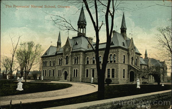 Front: The Provincial Normal School, Ottawa ہے 101. 380 (1) Back: The Valentine & Sons' Publishing Co., Ltd. Montreal and Toronto THROUGHOUT THE WORLD. Correspondence. SNOS BAT CARD. FAMOUS