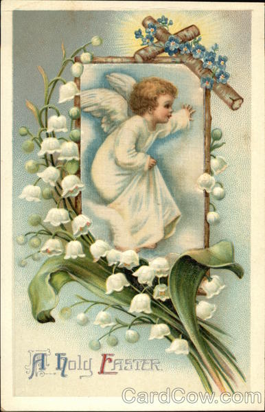 A Holy Easter with Angel, Cross, and Lily of the Valley