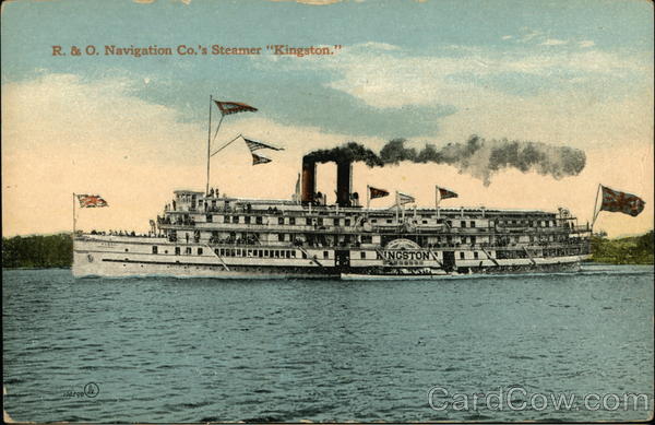 Front: R. & O. Navigation Co.'s Steamer "Kingston." 100598 (J. ****** NINGSTON MA Back: The Valentine & Sons Publishing Co., Ltd. Montreal, Toronto and Winnipeg 8/24 J Goodman THROUGHOUT THE WORLD. V. & SONS FAMOUS CARD.
