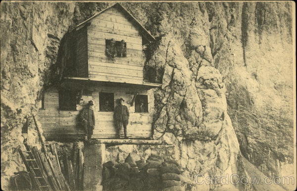 Refuges d'alpins entre les roches d'une paroi à pic.