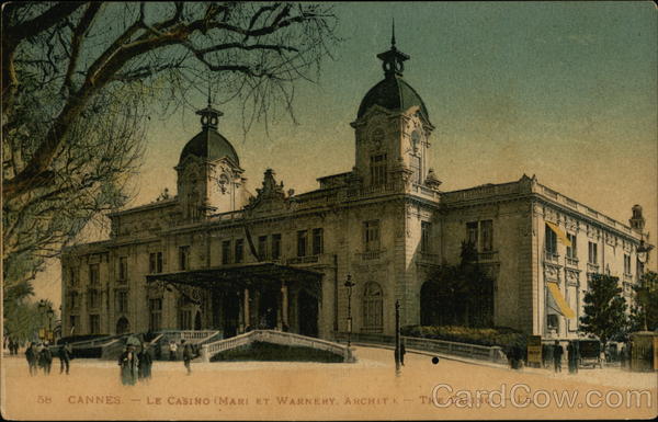 Front: 58 On CANNES. LE CASINO (MARI ET WARNERY. ARCHIT.. THE CASINO. LL Back: da RÉUNIS, 44, RUB LETELI IER, PARIS. LEVY ET NEURDEIN 4_ Nécrire que sur le ôté réservé à la correspondance