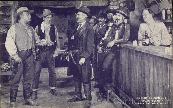 Front: ROBERT EDESON AND NOAH BEERY THE START OF A FEUD Back: MANUFACTURED BY EXHIBIT SUPPLY CO., CHICAGO, ILL. MADE IN U. S. HERE