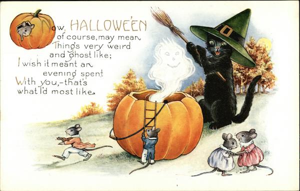 Front: HALLOWEEN ow, W, of course, may mean, Thing's very weird. and phost like; I wish it meant an evening spent With you,-that's what I'd most likes 10 Back: 105 Shin 89-83-4 Whitney Made Jorcester ass MADE IN U. SA 5