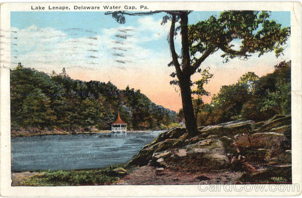 Front: Lake Lenape, Delaware Water Gap, Pa. 18022 Back: AGE 50 SEP 7 THIS SES FOR THE ADDRESS 1921 our vacation an the Oconos and Miss E are now on our #50 nay home. Frances. UENTS Pa