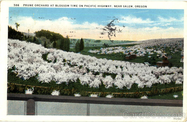 PRUNE ORCHARD AT BLOSSOM TIME ON PACIFIC HIGHWAY, NEAR SALEM, OREGON