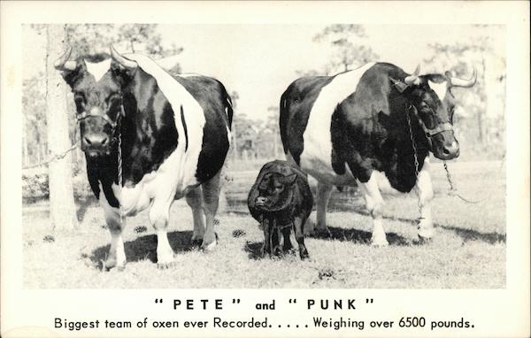 Biggest team of oxen ever Recorded. . . . . Weighing over 6500 pounds.