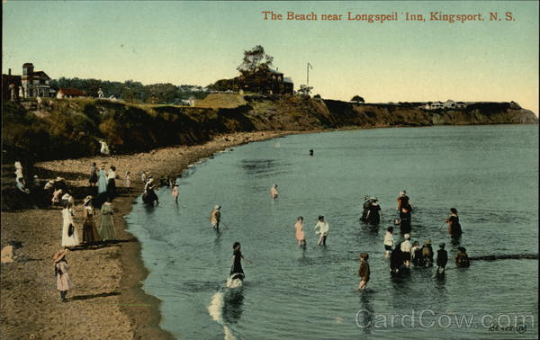 Front: The Beach near Longspeil Inn, Kingsport. N. S. 106.425 V Back: Montreal and Toronto The Valentine & Sons Publishing Co., Ltd. FAMOUS POSTY & SONS V&SONS CARD THROUGHOUT THE WORLD BRITISH MANUFACTURE
