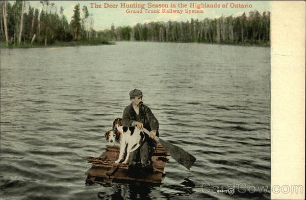 Front: The Deer Hunting Season in the Highlands of Ontario Grand Trunk Railway System 100207 JV. Back: The Valentine & Sons' Publishing Co., Ltd. Montreal and Toronto SOUVENIR POST GARD L... 8