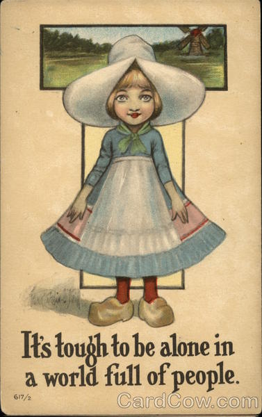 Front: It's tough to be alone in a world full of people. 617/2 Back: BERGMAN QUALTY This side for Address