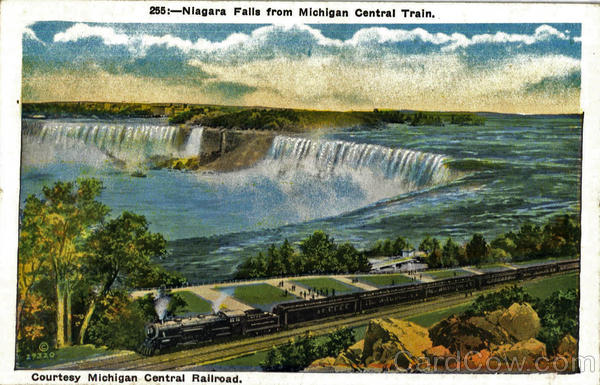 Front: 255: Niagara Falls from Michigan Central Train.. 293.20 Courtesy Michigan Central Railroad. Back: POST CARD For United States and Island Possessions Cuba, Canada and 5- IN MADE<