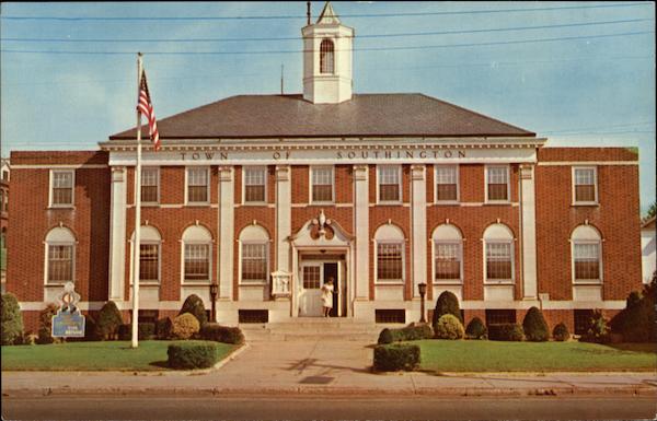 Front: τρα – Κατα OWN CHRI SOUTHΙΝΕΤΟΝ Back: 94677-B SOUTHINGTON, CONN. Town Hall dp 50 Pub. by NATCO®, Natural Color Cards Co, Ridgefield Park, New Jersey DEXTER PRESS, INC. WEST NYACK, NEW YORK Bi HERE