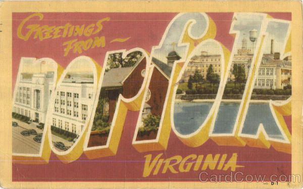 Front: GreEnMes BETINGS VIRGINIA D-1 Back: Published by Nesson Candy Co., Norfolk, Va. ON 2 530 PM 31374 Colorcroft-Made by The Dexter Press, Pearl River, SEP: 5 OL WAN CODE 1789-1992 PUSTAUL