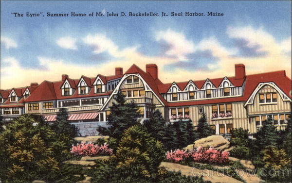 Front: "The Eyrie", Summer Home of Mr. John D. Rockefeller, Jr.. Seal Harbor, Maine 合合令 田田 Back: 68201 "TICHNOR QUALITY VIEWS" REG. U. S. PAT. OFF. MADE ONLY BY TICHNOR BROS., INC., BOSTON, MASS.
