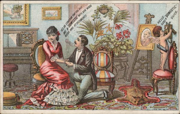 Front: Syoe WORK AND ATTACHMENTS SEND A DOMESTIC QUICK. 0173H Back: D. F. BARTO, AGENT FOR THE LIGHT RUNNING DOMESTIC, SEWING MACHINE WATSONTOWN, PENN.
