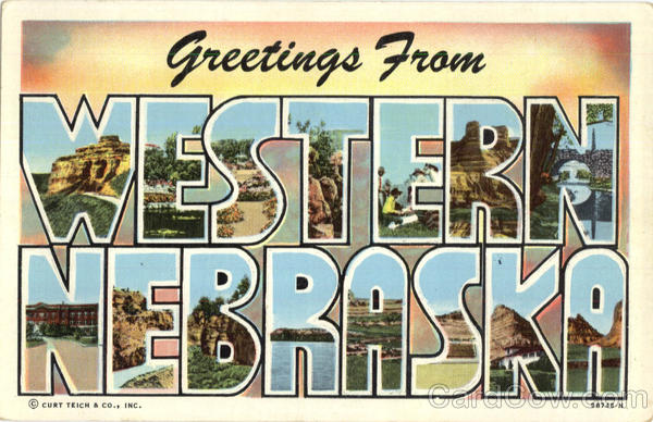 Front: Greetings From EBRASKA C CURT TEICH & CO., INC. 9B748-N Back: KENT NEWS AGENCY, SCOTTSBLUFF, NEBRASKA