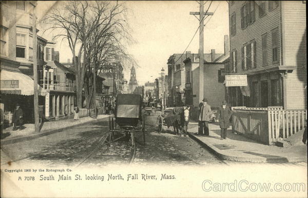 Front: LEOTE DU KIKING CER scuit RY.CLOAK CO Copyright 1905 by the Rotograph Co A 7078 South Main St. looking North, Fall River, Mass. BOSTON ALL RIVER EXPRESS CO Back: The Rotograph Co., N. Y., City. (Germany.) Two cents